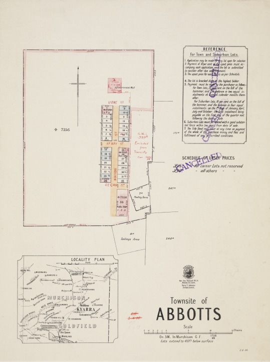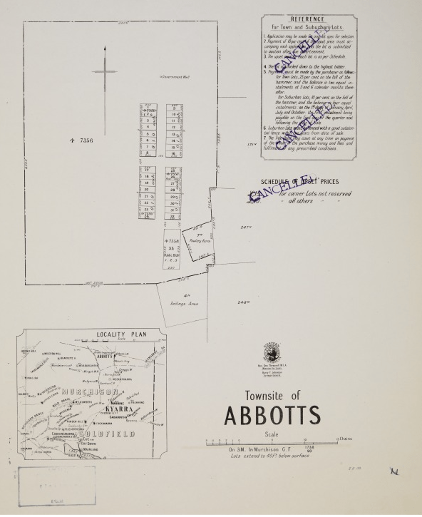 Abbotts, north of Meekatharra, was named for prospector, Vincent Abbott, who in 1893 had changed his name from Vincent Vrauizan. The Black Iguana and Abbotts gold mines operated in the area and in 1896 were employing between 60 and 70 men. Mason brothers had opened a hotel at Abbotts a year earlier and in 1901, F. McGlead had purchased the place, which was advertised as the Victory Hotel. There was also at least one boarding house in the town. The mines at Abbotts are believed to have operated for about a decade.
