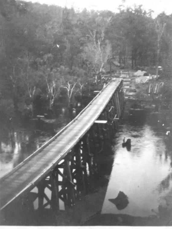 The solution to the river crossing was the Asquith Bridge, sometimes also referred to as the Long Gully Bridge. This enormous wooden structure, built between 1949 and 1952, epitomizes the technical skill of the WAGR.14 15