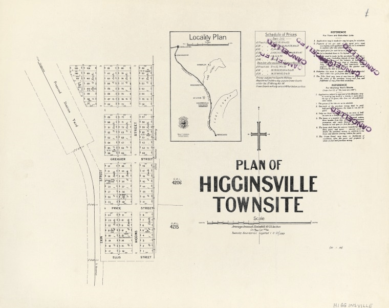 - Dept of Lands and Surveys, 1909. Plan of Higginsville townsite. Image retrieved 16 Oct 2024 from https://catalogue.slwa.wa.gov.au/record=b1894479~S2 ↩︎