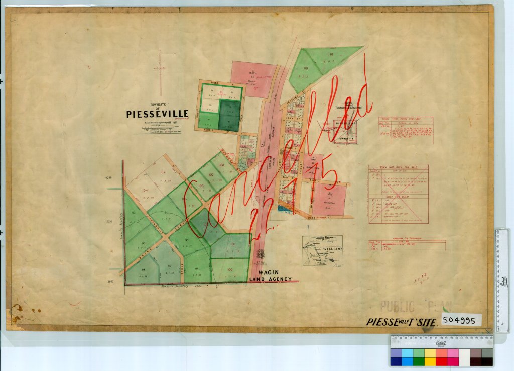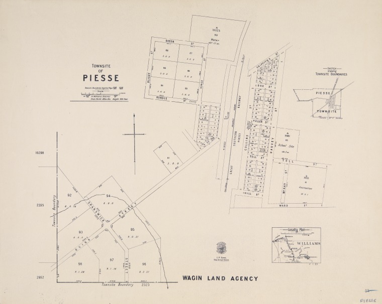 - State Records Office of WA, n.d. Townsite of Piesseville. Cartographic material retrieved 3 Dec 2025 from https://archive.sro.wa.gov.au/uploads/r/srowa/3/a/3a82708f477e0bd73317ec90a7261c0a6ed2589d21df70a4a558989f6eaa7e94/Cons_5698_Item_1398.jpg ↩︎