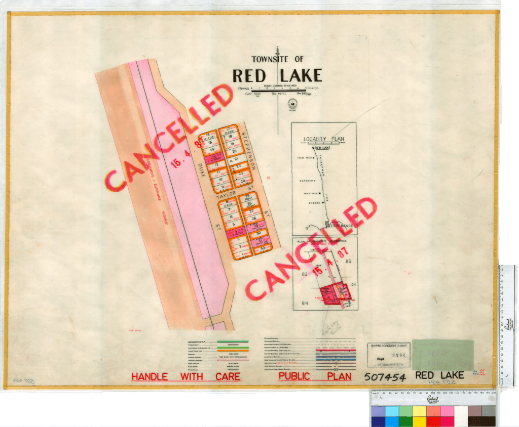 - 1922: Red Lake is officially gazetted as a townsite with 32 blocks and three named streets.