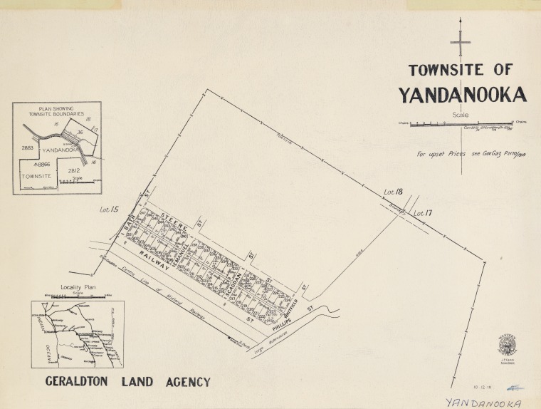 - State Library of Western Australia, n.d. Townsite of Yandanooka: Western Australia Department of Lands and Surveys. 1919. Cartographic material. Retrieved on 29 Nov 2025 from https://encore.slwa.wa.gov.au/iii/encore/record/C__Rb1989976?lang=eng ↩︎